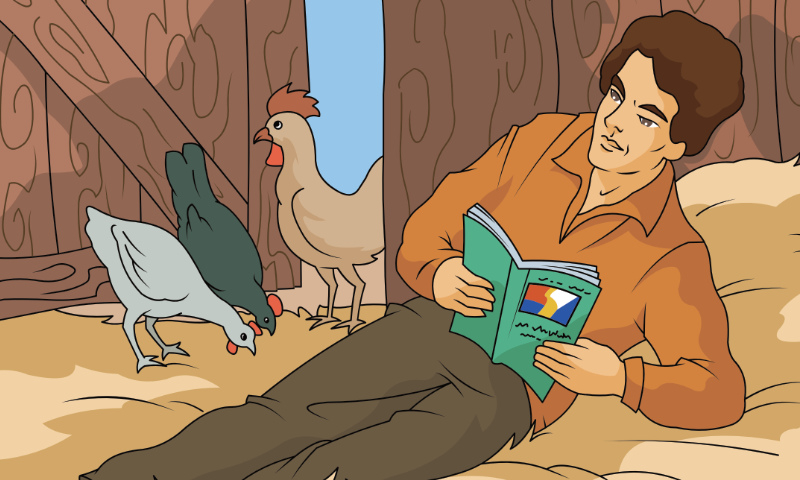 Hudson był molem książkowym. Ułożył się wygodnie w stodole z książką.